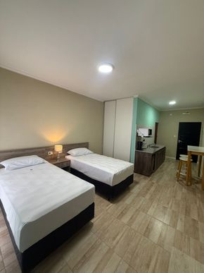 Disfrutá de la estadía en nuestros departamentos de uno y dos ambientes, diseñados para alojar hasta 4 personas. Cada unidad cuenta con baño privado, cocina totalmente equipada, televisor, WiFi, aire acondicionado frío/calor y frigobar. Además, ofrecemos servicio de blanquería para que tu experiencia sea aún más confortable y sin preocupaciones.